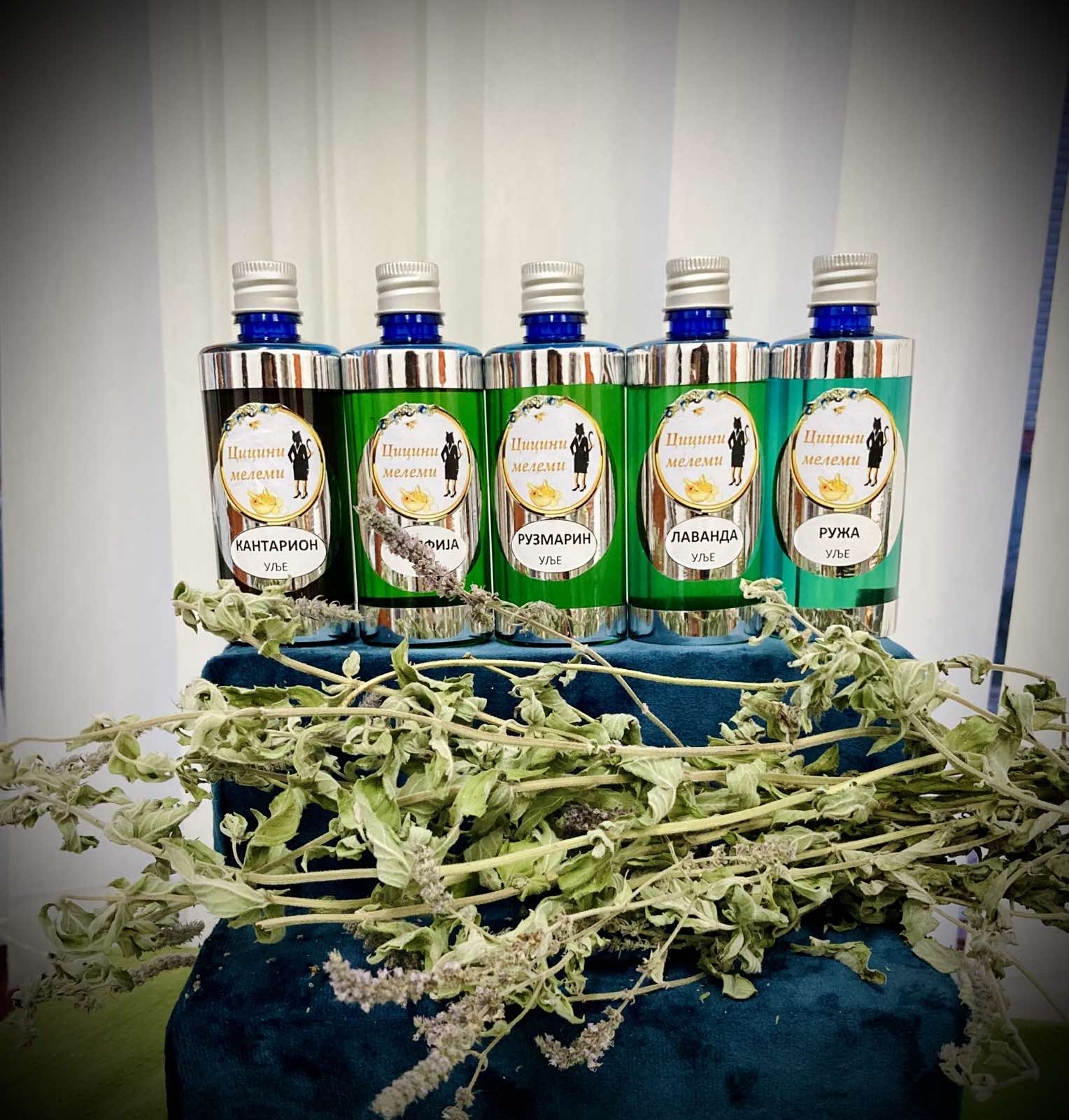 Наша уља настају поступком мацерације, тако што лековите биљке потапамо у нерафинисано сунцокретово или маслиново уље. Наше биљке тамо проводе време које протиче, а ми их излажемо сунцу, док стаклене тегле у којима се налазе повремено протресамо како би лековити састојци из биљака прешли у уља. Након 40 дана, процедимо садржај и наша уља су тада спремна за примену.